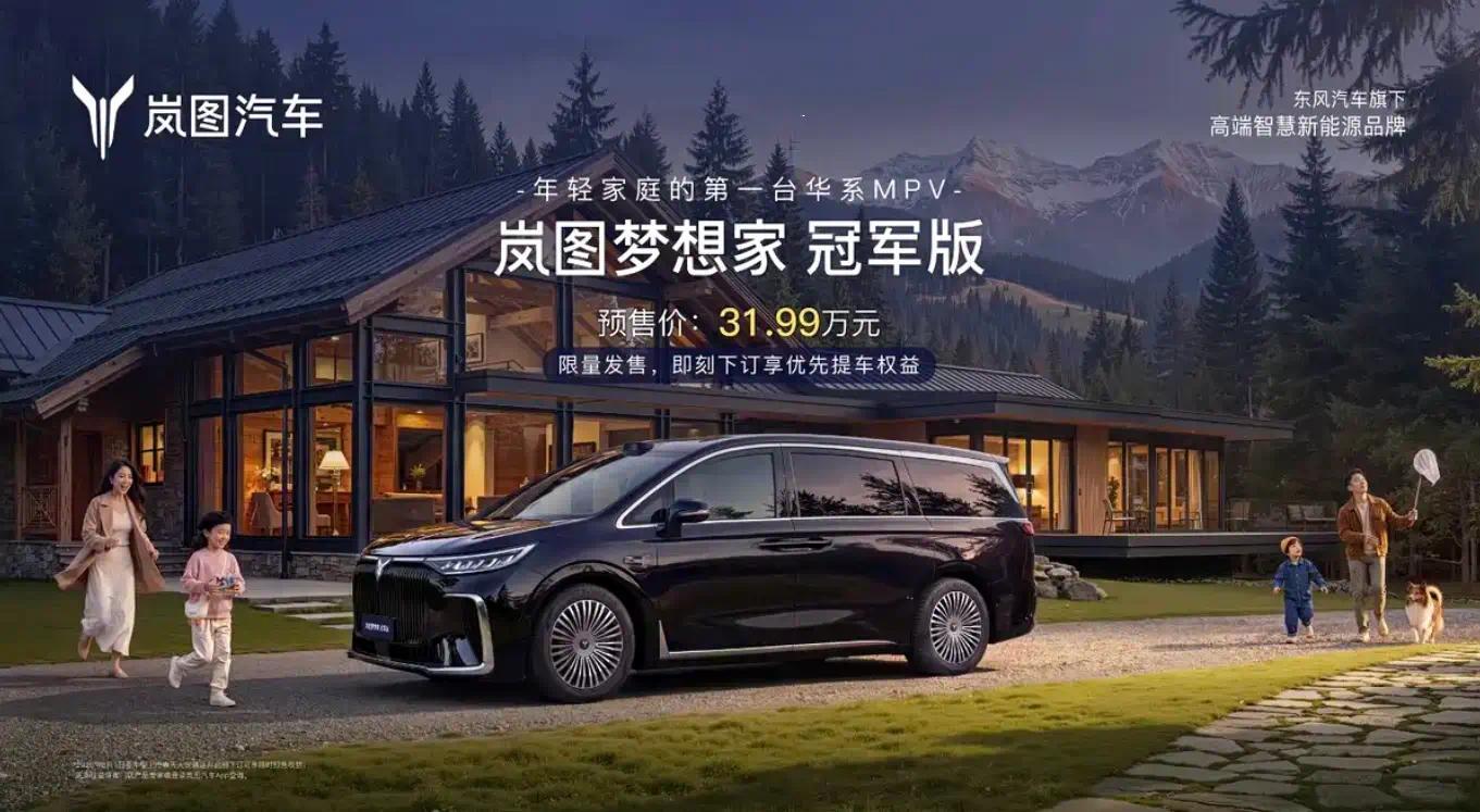 3月1日,我们从官方获悉,岚图梦想家冠军版开启预售,预售价31.99万元。车辆将限量发售,目前已开启预订,将于3月内正式上市。同时,岚图梦想家还将于本月迎来第20万辆整车下线。